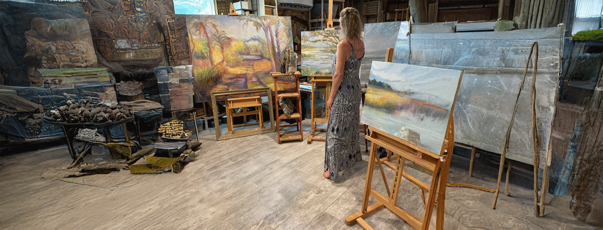 Landscape painting and detailed hand-painted sculptures in clay are my true passions. Southern Life is so full of beauty and character that I feel one medium simply isn’t enough to capture it all. I’m especially drawn to Hilton Head Island's flora and fauna in my sculptures, inspired by the memories of my childhood and the rich history of Hilton Head Island. In my oil paintings, I focus on preserving the native plants, animals, people, and landscapes, as they are such an important part of the island mystique. For the past 40 years, I’ve made my living through murals and commissions, always working to bring my client's vision to life through a composition of soft color and tranquil emotion.